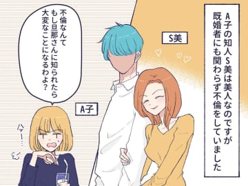 A子の知人S美は既婚者でありながら不倫を楽しんでいました。S美曰く「不倫をしてると人生潤うの」だそう...