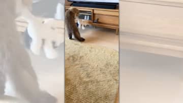 猫が…歩いた!?ぬいぐるみを抱えて二足歩行する猫ちゃんに爆笑♪「ホントは猫ではないかも?」