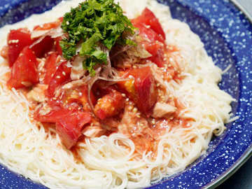 少し工夫するだけ!夏キャンプに絶品の梅トマトそうめんが簡単なのに美味しすぎる…!