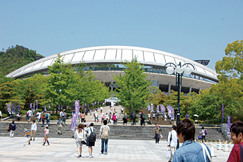 5月10日、天候は晴れ。Jリーグ13節、サンフレッチェ広島対清水エスパルスの闘いがエディオンスタジアム広島で繰り広げられた。この試合を観戦する応援ツアーを組んだのはERジャパンだ。参加者は総勢40人、福山からバスを借り切ってのツアーだ。参加者の内訳は、社員13人、障がいをもつ社員14人・その家族13人だ。障がいを抱える人たちに気持ちよく働いてもらうためには、工場勤務の社員同士はもちろん、家族との連携が欠かせない。こういったイベントを催すことで、お互いの関係をより密なものにしている。