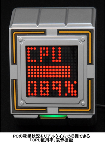 指定した文字列をスクロール表示させるだけでなく、メールの着信通知機能や、秘密基地の心臓部ともいえるPCの稼働状況をリアルタイムで把握できる「CPU使用率」表示機能も搭載。基地運営の効率化などにも役立ちそうだ。また、時計表示機能も備え、PCと連動して正確な時を刻むこともできる。さらに、RSS表示機能も備え、最新情報を常に表示させることも可能だ。