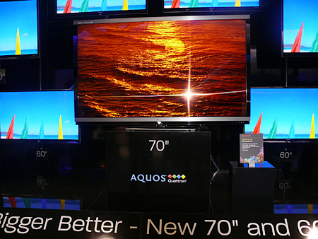 ブース入口前の70型「AQUOS クアトロン」
