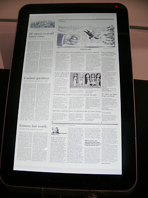 電子書籍の閲覧などが可能な「GALAPAGOS」も、もちろん展示している。日本で提供している電子書籍の配信サービスを、2011年には米国でも開始する。ほかにも、タブレットで表示している動画を、テレビやスマートフォンに表示するというデモなどで、来場者は盛り上がった