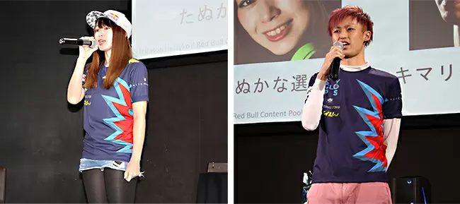 鉄拳7で活躍する、CAGのたぬかな選手は「PCについてはあまり詳しくないが、画質もキレイで、初心者でもいい製品ということがわかる」とコメントし、PUBGの選手として活躍する、CAGのキマリ=ロンゾ選手は「中学生のころからデザインがかっこいいということ、PUBGは高いスペックを要求されるので、ALIENWAREの高い性能は大きな力になる」と語った。