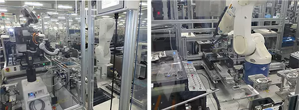実装された基板は、FBT(ファンクション・ボード・テスト)と呼ばれるボード検査の工程に進む。ここで人型双腕ロボットの「ゼウス」と「メティス」が活躍する。ギリシア神話の全知全能の神であるゼウスと、その最初の妻でもあり娘ともされるメティスが協働しながら黙々と作業する。