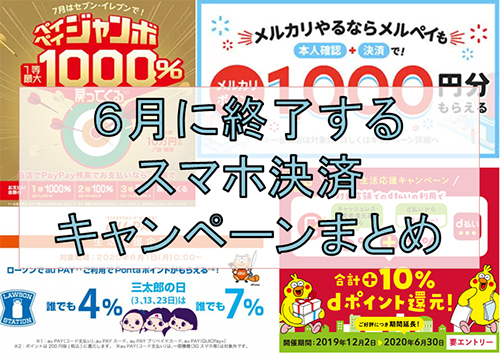スマートフォン決済サービス各社が実施しているお得なキャンペーンは、月末で終了を迎えるものが多い。6月は実店舗だけでなくオンラインストアが対象になるなど、外出自粛を継続するユーザーにも便利に活用された。駆け込むなら今日と明日がラストチャンスになる。
