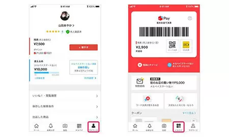 リニューアル後の新しい「マイページ」「メルペイ」画面