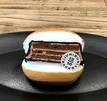 代々木八幡の人気ベーカリー「365日」を手掛ける杉窪章匡シェフによる、「いつもよりちょっといい気分、いい暮らし」がテーマの「ジュウニブンベーカリー」からは、赤レンガに見立てたチョコレートケーキを挟んだ「赤レンガ マリトッツォ」が登場する。価格は648円。