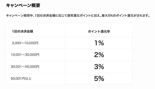 最大5%上乗せ還元キャンペーンのポイント還元率