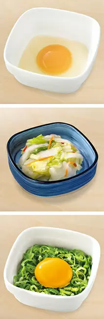 (上から)ラインキング1位の「玉子」、2位の「お新香」、3位の「ねぎ玉子」