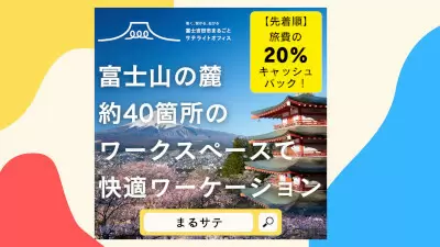なお、「まるサテ」の公式LINEアカウントや公式Instagramをフォローし、富士吉田市内のワークスペース1カ所以上に30分以上滞在し、写真撮影後にハッシュタグ「#富士吉田市まるごとサテライトオフィス」「#まるサテ」を付けてSNSに投稿することで、交通費・宿泊費の合計費用の、20%をキャッシュバックする(上限1万円)。