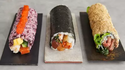 ラインアップは、「まぐろと鰤の海宝巻」「和牛ローストビーフと菜の花の柚子巻」「海老とサーモンの恵方巻」の3種類を用意する。