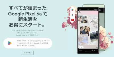 新生活キャンペーン実施中の「Google Pixel 6a」