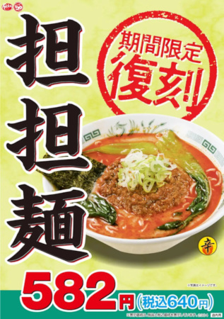 2019年4月の「大宮担々麺」の登場に合わせて販売を終了していた担担麺だが、顧客からも復活の要望を多く寄せられたこともあり、今回4年ぶりに期間限定での復活が決定した。日高屋の担担麺は、ごまとねりごまをたっぷり使い、豚ひき肉、ザーサイを炒めて仕上げている。豚骨スープに合わせた風味豊かなゴマ、ひき肉のおいしさを楽しめる。