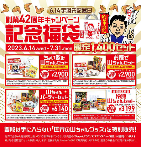 「幻の手羽先」がおすすめの居酒屋チェーン「世界の山ちゃん」を展開するエスワイフードは6月14日(本日)、創業42周年にちなんで限定1400セットの「42周年記念福袋」を用意した。販売期間は7月31日までで、なくなり次第終了。なお、エスワイフードの創業日である6月14日は「手羽先記念日」に登録されている。
