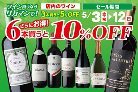リカーマウンテンは5月12日までの期間中、厳選ワインを多数用意してキャンペーン価格で販売している。