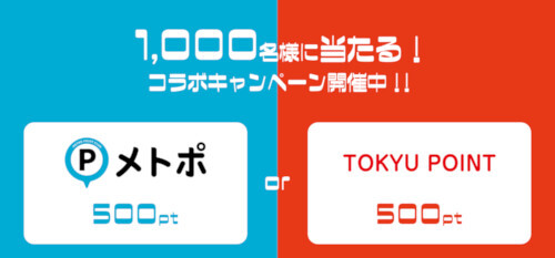 東京メトロと東急電鉄は、複数の路線で相互直通運転を実施しており、両社の乗車ポイントサービスを同一のPASMO/モバイルPASMOで登録・利用可能であることを広く知ってもらうため、「メトポ」と「東急線の乗車ポイント」の二つのサービスに同一のPASMO番号を登録し、期間中に特設サイト(https://ii.tokyu.co.jp/point/metpo_tokyu/)で必要事項を入力してエントリーした人の中から抽選で合計1000人に、応募時に選んだ「メトポ」または「TOKYU POINT」500ポイント(500円相当)をプレゼントする。