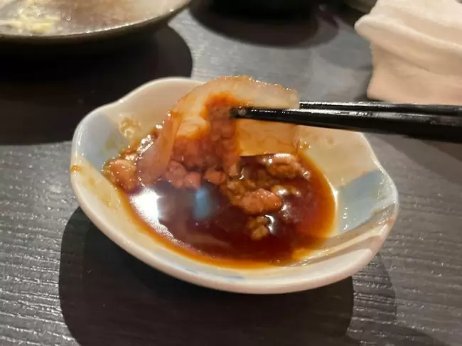 定番二品目は大将の地元である新潟県村上地方に伝わる煮物「だいかい」(600円)。見た目とは裏腹にすごく優しく強い旨みを持つ。特に素材の旨みが染み出した「汁」が最高。汁に浸した具材はビールに合う。この汁は飲み干すべき逸品。たとえ高血圧だとしても、だ。