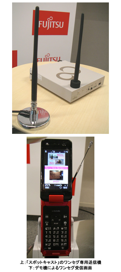 富士通、世界初のワンセグ「スポット」配信、微弱電波使い半径3mの範囲に