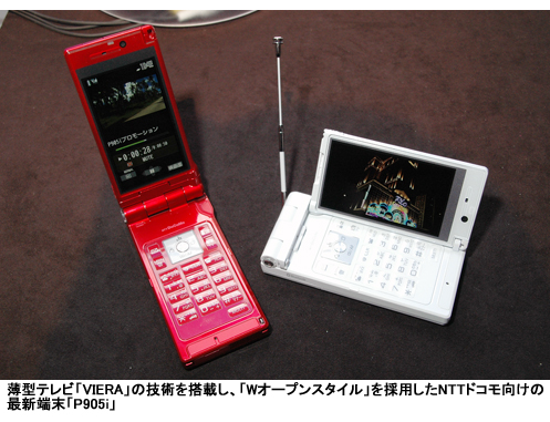 同社は、ドコモ向けに07年冬モデルとして5機種を供給する。目玉となるのは、松下電器産業の薄型テレビ「VIERA(ビエラ)」の名前を冠し、「VIERAケータイ」と名づけた携帯電話「P905i」「P905iTV」の2機種。