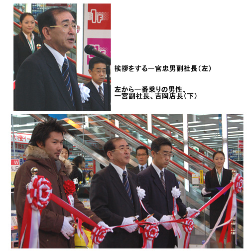 場所はJR秋葉原駅・電気街口のすぐ目の前。11月11日に閉店した家電量販店「サトームセン駅前1号店」のビルを改装して出店した。オープニングセレモニーでは吉岡俊貴店長のほか、一宮忠男副社長兼COOも出席。一宮副社長は、「秋葉原駅前という好立地に出店することができた。(この店舗を)ヤマダ電機のシンボルとして位置づけている」と話し、新店舗に大きな期待を寄せた。その後、先頭に並んでいた来店客第1号の男性とともにテープカットを行った。