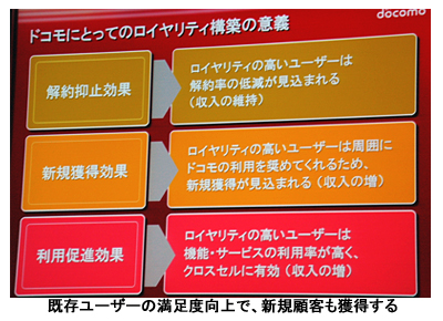 荒木裕二執行役員コーポレートブランディング本部副本部長は「新戦略で既存ユーザーのドコモに対するロイヤリティを高めることができれば、ユーザーの囲い込みが可能になる。また、ブランドイメージも向上し、新規契約者の獲得にもつながる」と自信をみせた。