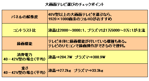 プラズマには37V型未満のサイズがないので、それ以上の大きさの薄型テレビを購入する時には、液晶にするのか、プラズマするのかを決めなければならないのだが、液晶、プラズマともに技術革新が進み、それぞれの弱点は改善されてきているので、液晶かプラズマということには、それほどこだわらなくてもよいだろう。