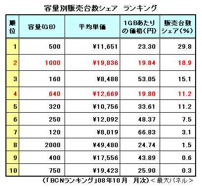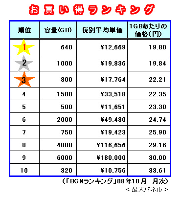 今回、売れ筋モデルが必ずしも「お得」ではないことが分かった。外付けHDDを購入する際は、1GBあたりの価格を計算しながら、お買い得モデルを探してみてはいかがだろうか。(BCN・山下彰子)