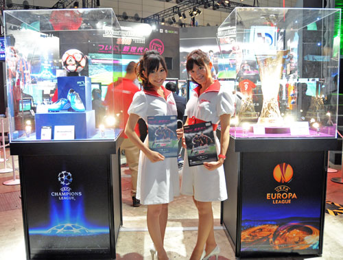 コナミブースでは「ウイニングイレブン 2010」にかなりのスペースを割いていた