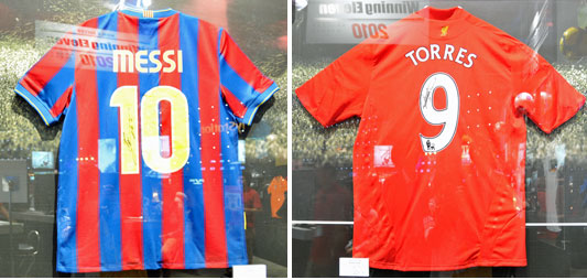 リオネル・メッシ選手とフェルナンド・トーレス選手のサイン入りユニホーム