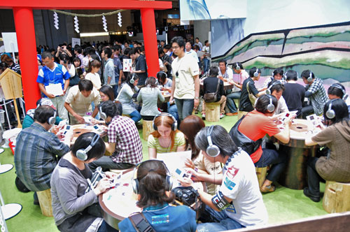 男子が集まってやるゲームといえば、サッカーゲームとして長い人気を誇る「ウイイレ」こと「ウイニングイレブン」だろう。コナミブースでは、11月5日に発売する「ウイニングイレブン 2010」を大々的に展示していた。