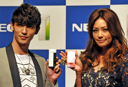 NEC、携帯端末の09年度冬春モデルを披露、玉木宏さんとRINAさんが登場