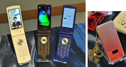 また、ドコモSTYLEシリーズの「N-01B」は、30代前半の女性がターゲット。厚さ13.4mmとスリム化を図ったボディに、ネイルアートをイメージした装飾を施し、女性らしい上質さを表現する。好みに合わせて選べる「マイセレクトモデル」対応で、2701パターンから自分なりのデザインが選択できる。さらに、ピンクに仕上げたアクセサリーブランド「STNY by Samantha Thavasa」とのコラボレーションモデルも用意。