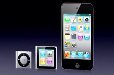 一新されたiPod(左からiPod shuffle、iPod nano、iPod touch)