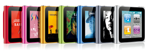 「iPod nano」は、かつてiPodの最大の特徴だったクリックホイールを廃止し、マルチタッチ対応の液晶ディスプレイを採用。形状は前モデルの縦長から真四角になり、より薄く、小さくなった。shuffle同様、服などに簡単につけられるクリップを新たに備え、インターフェース、デザインともに従来とは最も大きく変わったモデルといえるだろう。バッテリ駆動時間は24時間。容量は8GBと16GB、カラーはシルバー、ブルー、グリーン、オレンジ、ピンク、グラファイトとApple Store限定のレッドの全7色。日本での価格は8GBが1万3800円、16GBが1万6800円。