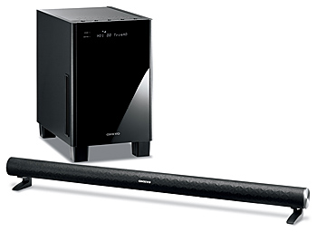 「CB-HT1200」は、スピーカーとサブウーファーを一体化したラック型モデル。サブウーファーのユニットを2基分離して搭載したことで、低音がしっかりと響くサラウンドを実現した。主要メーカーのテレビやレコーダーと動作が連動するリンク機能を備える。