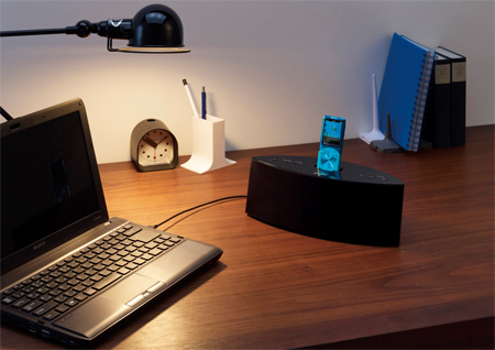 「RDP-NWD300」は、ウォークマンを接続できるWM-PORTを搭載したコンパクトスピーカー。USBケーブルでPCと接続することで、スピーカーにウォークマンをセットしたまま、音楽をPCから転送することができる。サイズは幅285×高さ95×奥行き119mm、重さは約830g。カラーは、ブラック、ホワイト、ピンクの3色。価格はオープンで、実勢価格は1万円前後の見込み。