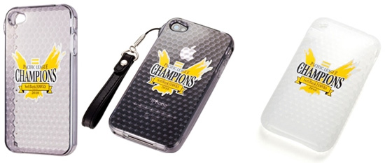 iPhone 4用の「ソフトケース ストラップスタイル for iPhone 4 2010パ・リーグ優勝記念モデル」は、家電量販店とオンラインショップで販売。カラーはジュエルブラック。オンラインショップでの価格は2980円。