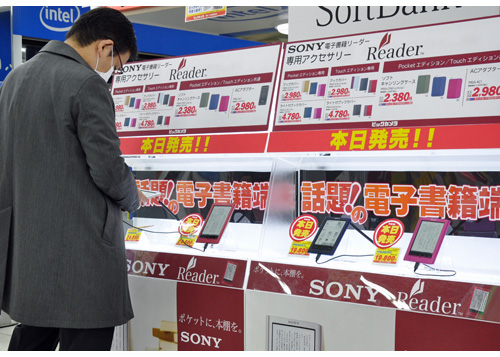 12月10日、電子書籍向け端末として、シャープのメディアタブレット「GALAPAGOS(ガラパゴス)」と、ソニーの専用端末「Reader(リーダー)」が発売された。特設コーナーに実機を揃えた東京・ビックカメラ有楽町店本館では、多くの客が足を止めて端末を体感していた。