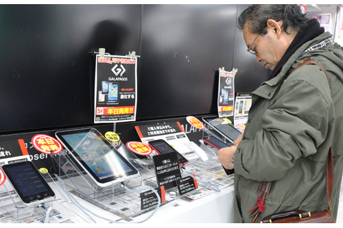 「すでにアップルのiPadという多機能端末が存在しているので、GALAPAGOSは手に取りやすいようだ」と話すのは、5F Windowsコーナーの福田亮一主任。有楽町店では、GALAPAGOSの実機を発売の一週間ほど前から置いていた。実際、特設コーナーで客が絶えることはなかった。