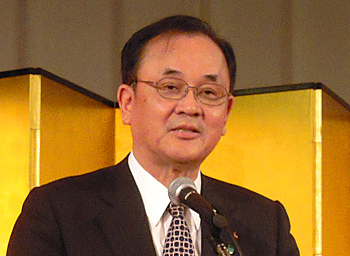 主催者を代表して挨拶した下村節宏会長は、昨年を「深刻な不況から回復傾向に転じ、明るい兆しがみえたものの、欧州の金融不安や米国経済回復の遅れなど、新たな問題に直面している。海外メーカーとの熾烈な国際競争や、大幅な円高などにより厳しい環境が続いている」と振り返った。また、日本経済を取り巻く環境について、「エコポイント制度などによって最悪期は脱したものの、自律的な回復過程には入っていない」と分析。さらに、日本の国際競争力を強化するために、「国内の研究開発拠点やマザー工場の海外流出を防ぐ環境整備も重要な取り組みの一つになる」とした。