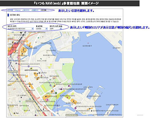 ゼンリンデータコムは、地図・ルート検索サイト「いつもNAVI」で、日本語、英語、中国語(簡体字)、中国語(繁体字)、ハングルに対応した地図を公開した。