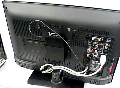 「LED AQUOS」V5シリーズの20-32V型は、エレコムのLacie製ポータブルHDD「LCH-RK500UTV」をテレビ本体の背面に収納できる