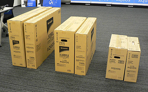 さらに新製品では、テレビの持ち帰りニーズに対応し、梱包サイズの薄型化を図った。40V型でもコンパクトカーの後部座席に載せることができる。