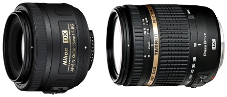 ニコンのAF-S DX NIKKOR 35mm f/1.8G(左)とタムロンのAF18-270mm F/3.5-6.3 DiII VC PZD ニコン用