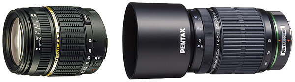 タムロンのAF18-200mm F/3.5-6.3 XR DiII LD Aspherical[IF]Macro ペンタックス用(左)とHOYAのDA55-300mmF4-5.8ED