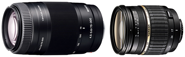 ソニーの75-300mm F4.5-5.6(左)とタムロンのSP AF17-50mm F/2.8 XR DiII LD Aspherical [IF] ソニー用
