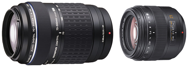 オリンパスのZUIKO DIGITAL ED 70-300mm F4.0-5.6(左)とパナソニックのLEICA D SUMMILUX 25mm/F1.4 ASPH.