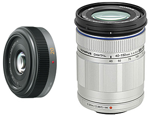 パナソニックのLUMIX G 20mm/F1.7 ASPH.(左)とオリンパスのM.ZUIKO DIGITAL ED 40-150mm F4.0-5.6 シルバー