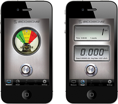 60KeV(キロエレクトロンボルト)以上のガンマ放射線を、誤差プラスマイナス5%以内の精度で測定できる放射線カウンター。放射線を検知するシリコン半導体による検出器を、iPhone/iPod touchのドックコネクタに接続して使用する。iPhoneなどに接続していない場合は、単独で放射能警報アラームとして機能する。